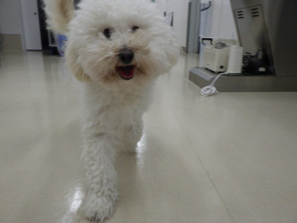 病院にもすっかり慣れた様子で自由に走り回っていました!