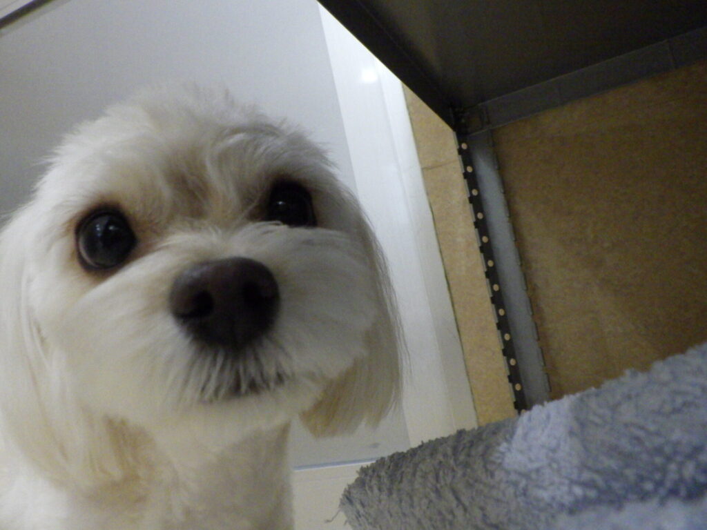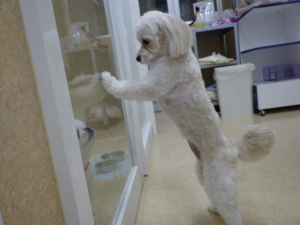 でも、隣の部屋にいるワンちゃんを見て尻尾をフリフリしていました🥰