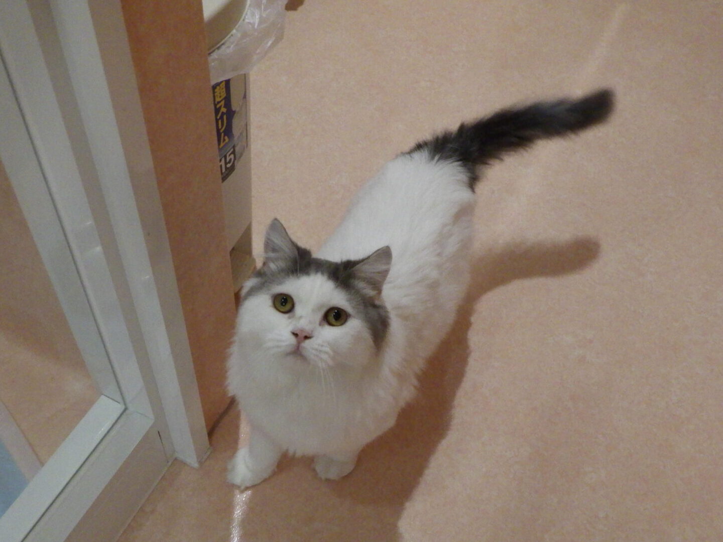 スタッフが顔を見せると、キャットタワーから降りてきてくれます。