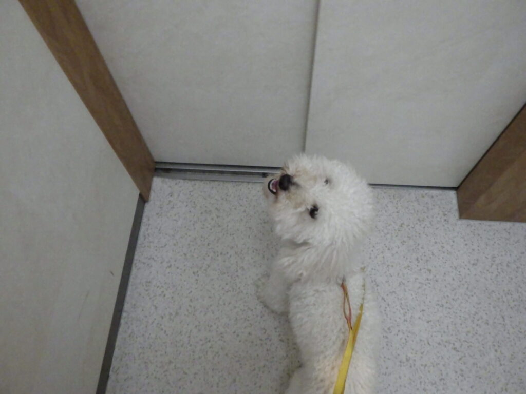お散歩早く行きたいよーと扉の前でソワソワ!