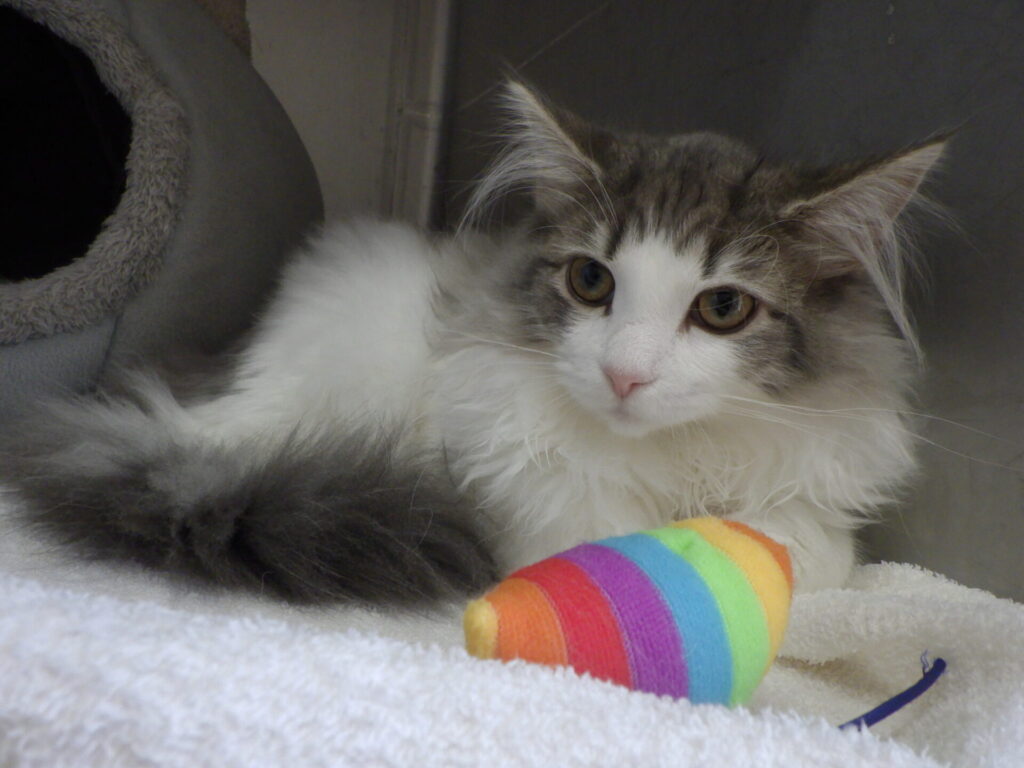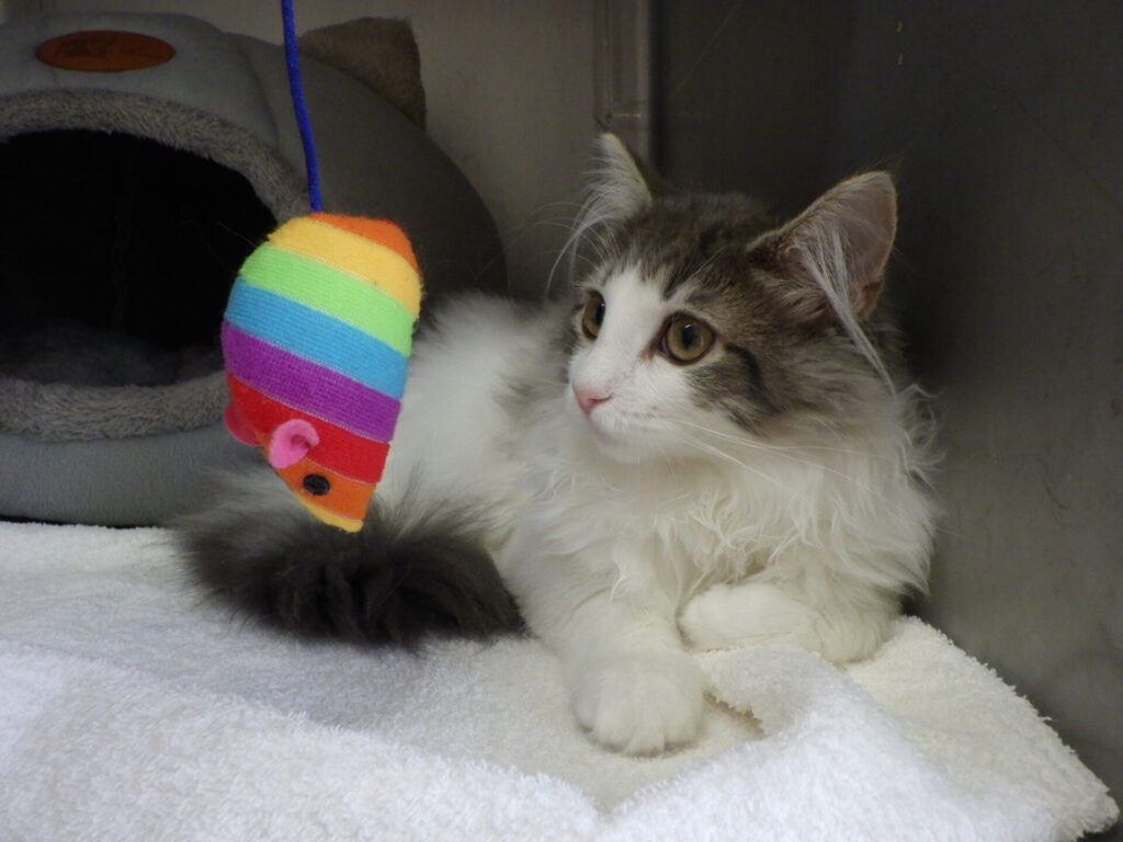 少し緊張している様子ですがスタッフが手を出すとクンクンと匂いを嗅いでくれます