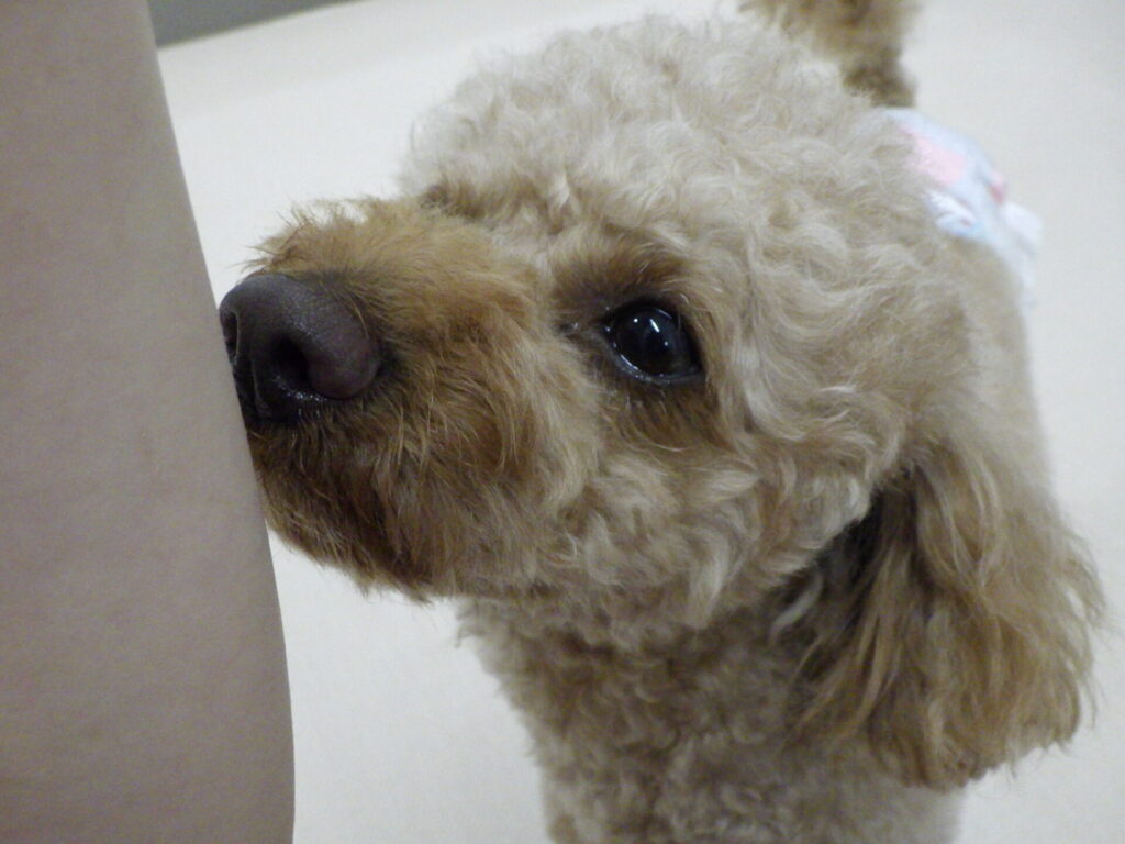 朝会いに行くとスタッフの所に来てきて匂いをクンクン🥰